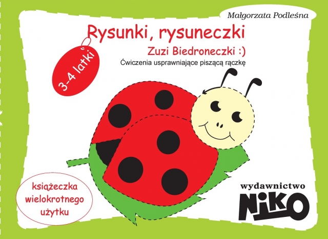 Umiejętność rysowania po śladzie warto doskonalić od najmłodszych lat. Jest to bowiem bardzo pożyteczne połączenie nauki i zabawy. Z jednej strony rozwija u dziecka koordynację wzrokowo-ruchową, koncetrację uwagi i uczy cierpliwości, a z drugiej jest ciekawym, lubianym przez nie zajęciem. Rysując po śladzie dziecko uczy się prawidłowego trzymania przyborów, jednocześnie doskonaląc płynność ruchów.Rysunki zostały dobrane w taki sposób, aby były dla dziecka rozpoznawalne i atrakcyjne. Dzięki temu maluch bardzo chętnie podejmie się zadania rysowania po śladzie. A jeżeli praca się nie uda może ją wykonać jeszcze raz. Możliwość wielokrotnego wykorzystywania kart to dodatkowy atut książeczki. Warto również pamiętać, że przedstawione rysunki mogą posłużyć do ćwiczeń w mówieniu, a tym samym wzbogacić słownictwo kilkulatka.Serdecznie polecamy