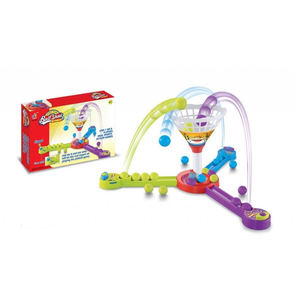 Gra zręcznościowa rzut do kosza. Zabawa polega na pstrykaniu piłeczką do kosza.