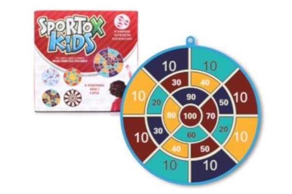 W zestawie: tarcza samorozkładająca się, 3 lotki, haczyk do zawieszania, średnica tarczy po rozłożeniu 49 cm, rozmiar tarczy po złożeniu 18 cm.