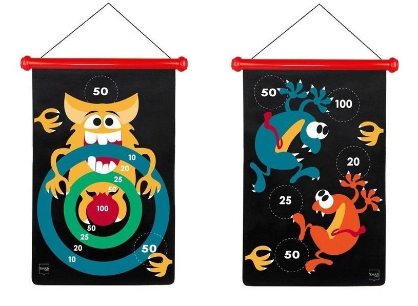 Tarcza jest dwustronna co pozwala na zabawę na dwa różne sposoby. Rzutki wykonano z tworzywa sztucznego z metalową końcówką, która ma specjalnie zaoblone wykończenie dla bezpieczeństwa dzieci. Tarcza wykonana z płótna idealnie mieści się do specjalnie zaprojektowanej tuby. którą wykonano z wytrzymałej tektury. Łatwe przechowywanie to dodatkowy atut tej niezwykłej zabawki. Dart to znana i lubiana gra, która rozwija zręczność i koordynację ruchowo-wzrokową u dzieci.