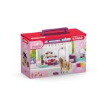 Twojego psa, kota lub konia czeka tu porządne szorowanie. Korzystając z pompy, możesz napełnić miskę prawdziwą wodą, a następnie niebieską i różową farbą do malowania palcami namalować na sierści piękne wzory. Farba nie rozmazuje się podczas głaskania zwierzaków. Przy następnej wizycie w salonie możesz ją zmyć i wymyślić nowe wzory.