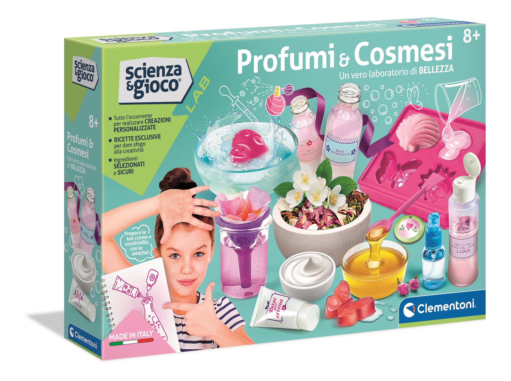 Piękna nauka zamknięta w maksi-zestawie z mnóstwem składników do pielęgnacji twarzy i ciała!Wszystko, co niezbędne, aby zbliżyć się do świata kosmetyki i w kilku prostych ruchach wykonać perfumowane pianki, kulki do kąpieli, mydełka, kremy i wiele innych.Szczegółowa instrukcja towarzyszy dzieciom w poszczególnych fazach doświadczeń, przeprowadzanych w całkowicie bezpiecznych warunkach, i objaśnia zasady leżące u podstawy kosmetologii.Doskonała zabawka dla miłośniczek świata kosmetyków, proponująca zabawę przy samodzielnym opracowywaniu własnych formuł kosmetycznych.