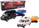 Ten zestaw to propozycja dla dzieci, które kochają dynamiczną zabawę pojazdami ratunkowymi i scenariusze akcji specjalnych. W jego skład wchodzi metalowy samochód typu van reprezentujący służby ratunkowe (policja, straż pożarna lub pogotowie ratunkowe) oraz plastikowa łódź motorowa na przyczepie. Komplet prezentuje się niezwykle realistycznie, a dzięki wykonaniu w technologii Die-Cast pojazdy są trwałe, solidne i przyjemne w obsłudze.
