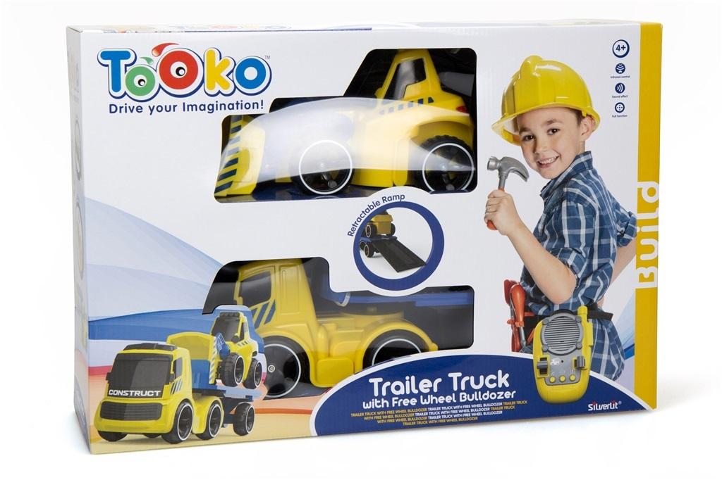 • w zestawie: laweta, spychacz oraz pilot do sterowania lawetą (przód/tył + prawo/lewo + efekty dźwiękowe),