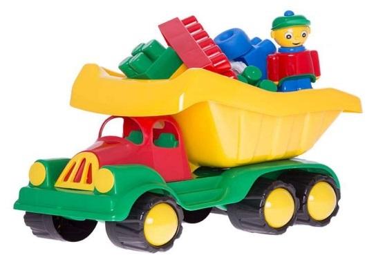 Samochód duży ma długość 45,5 cm. Posiada podnoszoną skrzynię ładunkową. Dzięki dużej ładowności, każdy chłopiec będzie mógł nim przewieźć swoje najcenniejsze skarby. W proponowanym zestawie znajdują się klocki K3 o szer. 5,7 cm, z których Dziecko może tworzyć róznorodne budowle. Wiele radości sprawia też naszym Pociechom dołączony do klocków ludzik.