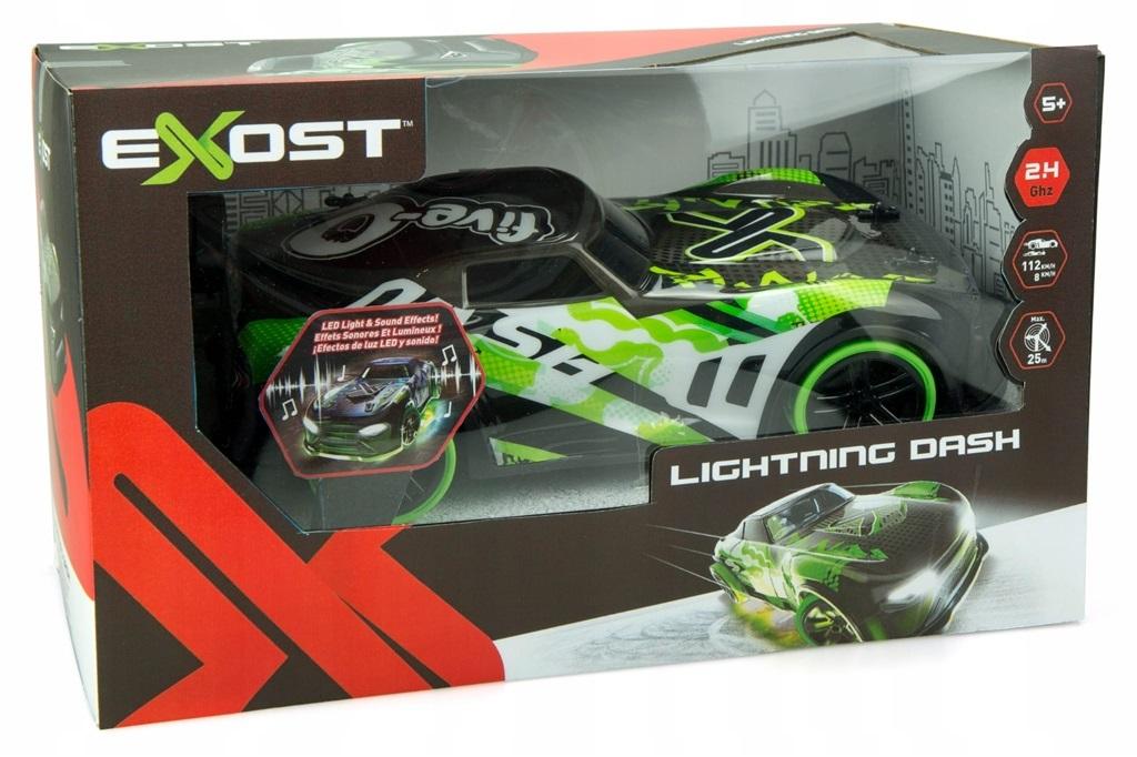 W blasku świateł nadjeżdża zdalnie sterowany Lighting Dash, gotów do szalonego rajdu! Pojazd wyposażony jest w światła oraz efekty dźwiękowe, co czyni zabawę z nim jeszcze bardziej realistyczną. W podwoziu znajdują się dodatkowe światełka w kolorze zielonym. Pojazd działa na częstotliwości 2,4 GHz. W zestawie znajduje się samochód oraz pilot.