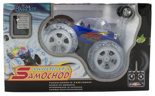 Marzyłeś o zdalnie sterowanym samochodzie? Chcesz dla swego dziecka zrobić fantastyczny prezent? Ta zabawka jest dla Ciebie. Nowy, wysokiej jakości zdalnie sterowany polski samochód to pojazd, który potrafi dostarczyć niesamowitych wrażeń na długie godziny. Potrafi jeździć zarówno na czterech kołach jak i na dwóch robiąc przy tym niesamowite ewolucje. Podczas jazdy gra znany przebój NO LIMITS! idealnie wpasowujący się do wariacji, które wyczynia ta zabawka. Ponadto zabawka jest cały czas oświetlona kolorowymi diodami dających w nocy niesamowite efekty świetlne. W zestawie: - Samochód Szalony Tancerz - pilot zdalnego sterowania - ładowarka sieciowa - zestaw akumulatorków - bateria: 9V do pilota