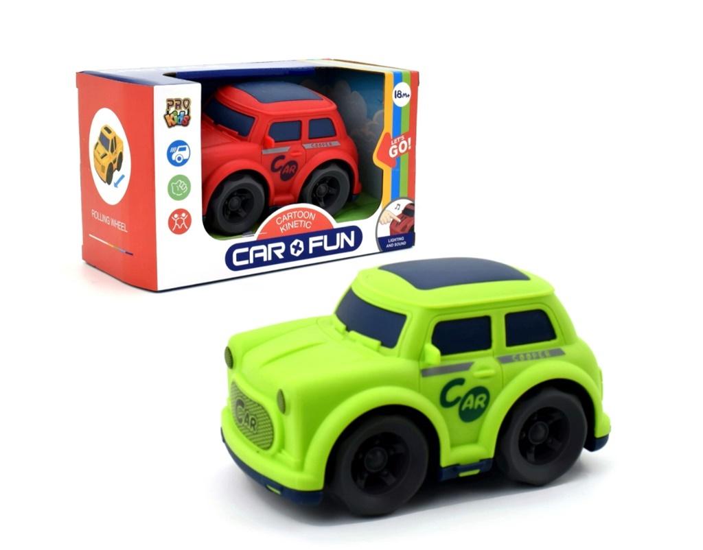 Autko zabawka dla najmłodszych. Samochodzik na baterie ze światłem i dźwiękiem. Samochodzik z napędem PullBack. Przyjazne pastelowe kolory i zaokrąglone kształty idealnie pasują dla małych dzieci.