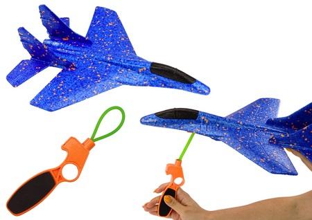 Samolot Myśliwiec Styropianowy Z Procą Wyrzutnia Niebieski Samolot styropianowy w kolorze niebieskim to doskonała zabawka dla małych i dużych entuzjastów lotnictwa. Wykonany z lekkiego styropianowego tworzywa, samolot unosi się z gracją nad ziemią, sprawiając, że każdy lot staje się niezapomnianym przeżyciem. Do samolotu dołączona jest proca na gumce, która dodaje akcji i emocji. Po zaczepieniu gumki od spodu samolotu, wystarczy puścić go z impetem, aby wzbijał się w powietrze, gotowy do wspaniałych lotów. Lekki materiał samolotu nie tylko ułatwia jego unoszenie się, ale także czyni go bezpiecznym w użytkowaniu, zapewniając godziny beztroskiej zabawy zarówno wewnątrz, jak i na zewnątrz. Dodatkowo, niebieski kolor nadaje mu atrakcyjny wygląd, który przyciąga uwagę i zachęca do kreatywnej zabawy. Ta zabawka nie tylko dostarcza rozrywki, ale także rozwija wyobraźnię i zmysł koordynacji. Dzięki prostemu, ale wciągającemu mechanizmowi, dzieci mogą odtwarzać scenariusze lotniczych przygód i kreować własne historie, rozwijając przy tym swoją kreatywność i zdolności manualne. Wymiary samolotu: 43cm x 33cm x 11cm Wymiary opakowania: 51cm x 35,5cm x 6cm Posiada certyfikat CE, ponadto jest zgodny z normą EN71. Przeznaczony dla dzieci powyżej 3 roku życia.