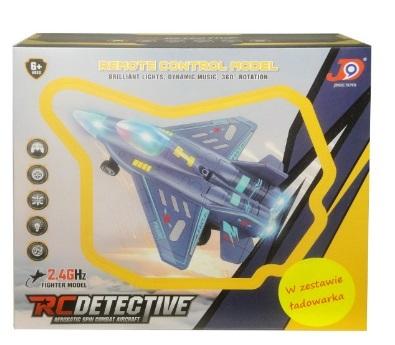Samolot dla dzieci sterowany pilotem. Pojazd porusza się do przodu, do tyłu, skręca w prawo, w lewo. Samolot obraca się także o 360 stopni. Świeci kolorowymi światełkami oraz wydaje dźwięki. Zabawka działa na baterie AA (niezałączone) oraz baterię litową akumulator (załączone do zabawki). Produkt dla dzieci od 6 lat. Podane wymiary są wymiarami opakowania. Zabawka zapakowana w kartonowe opakowanie