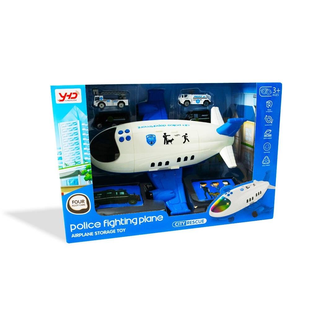 SAMOLOT ZE ŚWIATŁEM I DŹWĘKIEM + 4 MAŁE AUTKA