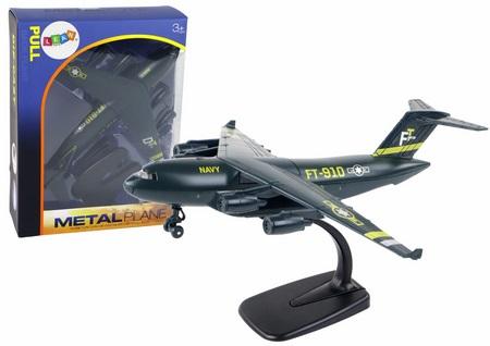 Samolot Czarny Wojskowy NAVY FT-910 Statek Powietrzny Ten model samolotu wojskowego jest imponujący pod względem wyglądu. Pomalowany jest w charakterystyczny czarny wzór, co nadaje mu wojskowy charakter i sprawia, że wydaje się być bardzo autentyczny. Kolorystyka i wzór nawiązują do stylu wojskowego, co nadaje zabawce prawdziwy charakter. Samolot jest wyposażony w aż cztery silniki, co nadaje mu wrażenie potężnej maszyny gotowej do akcji. Te detale sprawiają, że zabawka jest jeszcze bardziej imponująca i realistyczna. Ta zabawka oferuje interaktywne efekty dźwiękowe i świetlne, które znacznie wzbogacają zabawę. Po wciśnięciu przednich kół samolotu, światła w kabinie świecą się, a z samego samolotu słychać dźwięki przypominające start ogromnego samolotu. To dodaje uczucia realności i pozwala dzieciom na wcielenie się w rolę pilotów. W zestawie znajduje się statyw, na którym można postawić samolot. Jest to doskonały sposób na wyeksponowanie tego imponującego modelu na półce lub biurku. Samolot może być traktowany jako ozdoba lub element kolekcji, co dodatkowo podkreśla jego wartość. To dodatkowa cecha tej zabawki. Samolot posiada napęd frykcyjny, co oznacza, że dzieci mogą go pchać po różnych powierzchniach, co dodaje interaktywności i ruchu podczas zabawy. Ten realistyczny model samolotu wojskowego NAVY to nie tylko zabawka, ale także imponujący element dekoracyjny i kolekcjonerski. Pomaga rozwijać wyobraźnię dzieci, a także zachęca do opowiadania historii i eksplorowania świata militariów. To znakomity prezent dla małych miłośników lotnictwa i militariów, którzy docenią autentyczność i jakość tej zabawki. Zawartość zestawu : - Samolot - Statyw - Opakowanie oryginalne Wymiary samolotu : 22 cm x 22 cm x 5 cm Wymiary opakowania : 25 cm x 18 cm x 7 cm Samolot zasilany jest trzema bateriami 1.5V AG13, które są zamontowane w zabawce. Posiada certyfikat CE, ponadto jest zgodny z normą EN71. Zabawka przeznaczona jest dla dzieci powyżej 3 roku życia.