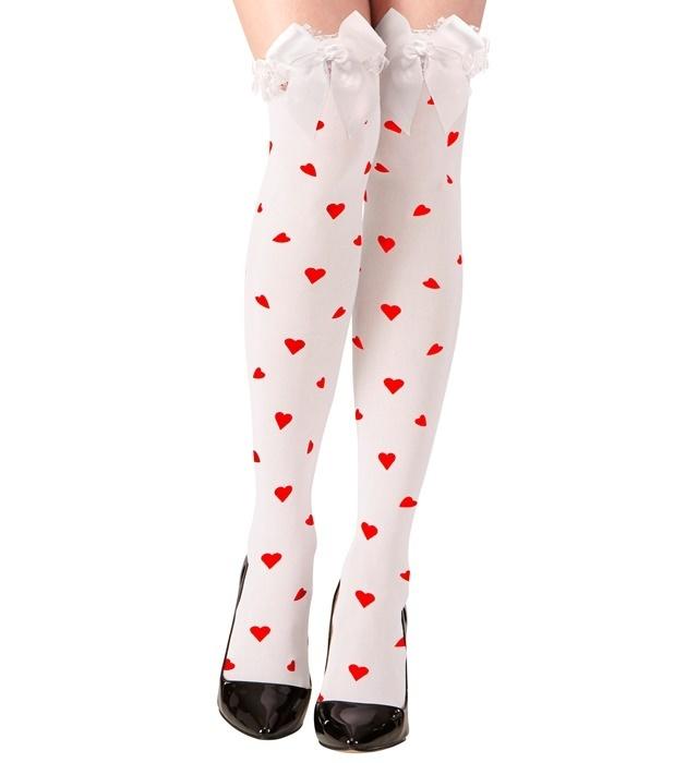 Samonośne pończochy kobiece białe w czerwone serca
