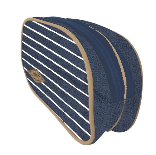 Saszetka dwukomorowa Basic paski, bez wyposażenia. Posiada dwie komory zapinane na zamek, emblemat i ozdobne wykończenia z ekoskóry