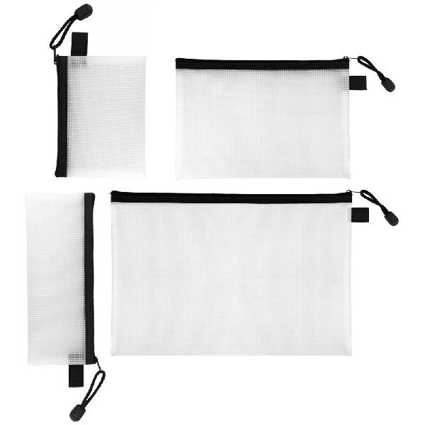 Ułatw sobie codzienne życie dzięki saszetce z zamkiem błyskawicznym! Ta stylowa torebka z przyjemnego w dotyku materiału EVA jest idealna do organizowania, przechowywania i przenoszenia przedmiotów w jednym wygodnym miejscu. Wzmocnienie w postaci nitki umieszczonej wewnątrz tkaniny w procesie produkcji zapobiega rozdarciu materiału i nadaje mu większą wytrzymałość. Saszetka jest idealna do przechowywania dokumentów, przyborów do pisania, kosmetyków i nie tylko. Niezależnie od tego, czy podróżujesz, czy potrzebujesz łatwego sposobu na zabezpieczenie przedmiotów codziennego użytku, z naszą saszetką będziesz cieszyś się bezproblemową organizacją. Zestaw zawiera 4 saszetki o wymiarach 230x310, 170x240, 105x140, 85x210 mm