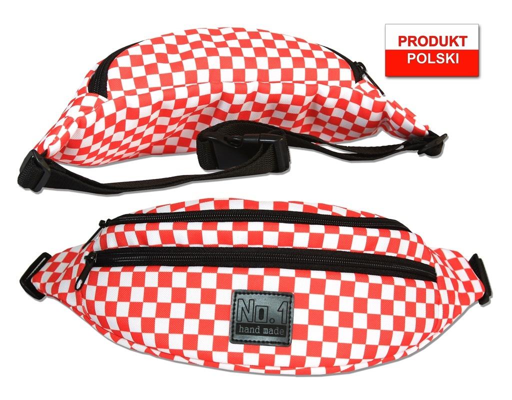 Saszetka/nerka wykonana z kodury, ozdobiona nadrukiem przedstawiającym kratę wykonanym w technologii sublimacji. Wyrób posiada 2 zamki błyskawiczne, a co za tym idzie 2 niezależne komory. Pasek posiada regulator umożliwiający dostosowanie długości paska do użytkownika. Wyrób o wymiarach 35x14x8[cm]. Kolor niebieski. Wyrób bez wyposażenia.