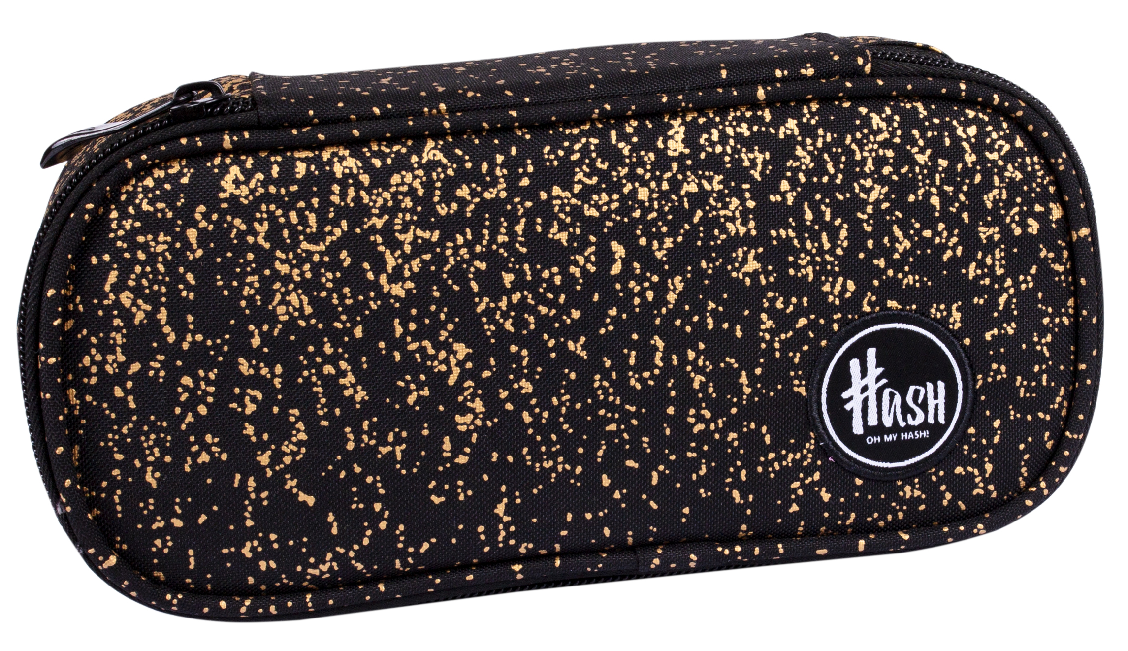 Saszetka piórnik Hash fashion ze złotym motywem szumu to absolutny must have tego sezonu. Odważne przejścia tonalne z czarnymi kropkami na złotym tle spodobają się miłośnikom mody, którzy lubią zwracać na siebie uwagę. Kompaktowy rozmiar saszetki sprosta wymaganiom każdego ucznia. Dodatkowo dzięki podwójnemu wewnętrznemu organizerowi Saszetka Hash pomieści wszystkie niezbędne przybory.