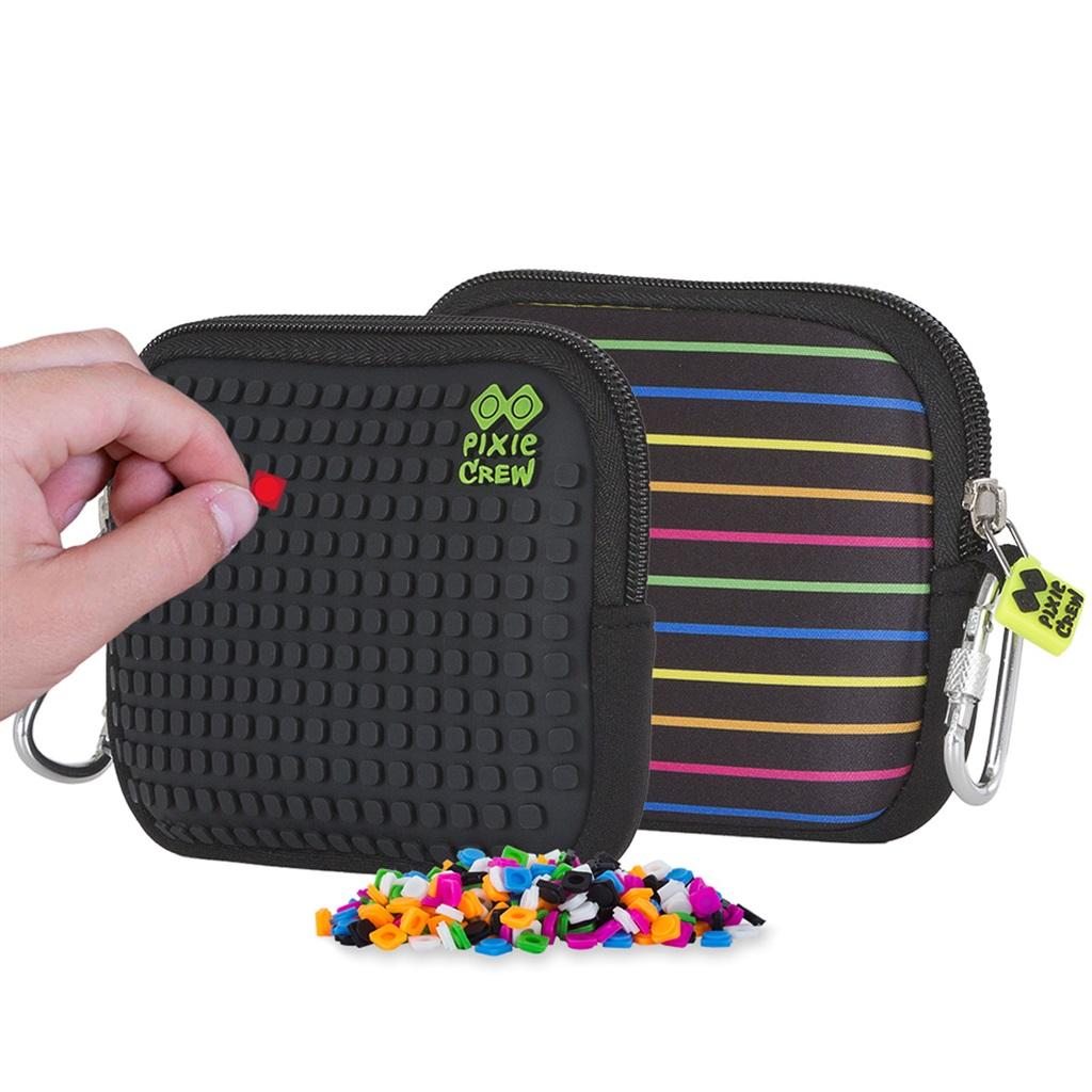 Wielofunkcyjna saszetka do codziennego użytku PIXIE CREW czarna, z motywem kolorowych linii. Posiada kreatywny czarny panel, na którym można tworzyć oryginalne i spersonalizowane grafiki, za pomocą małych silikonowych pikseli. Wykonana jest z praktycznego, wytrzymałego na wstrząsy i uderzenia neoprenu. Saszetka jest zapinana na suwak, z boku umieszczono karabińczyk. Wewnątrz znajduje się wystarczająco dużo miejsca na małe przedmioty codziennego użytku, takie jak klucze, kosmetyki, karty, pieniądze, czy inne drobiazgi. Saszetka jest sprzedawana z dodatkowym darmowym zestawem około 100 kolorowych pikseli.