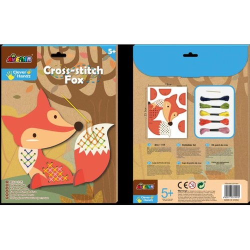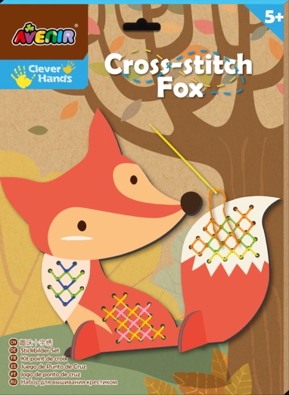 Avenir ścieg krzyżykowy to zabawka, która rozwija motorykę małej ręki, a także doskonale pobudza kreatywność. Wyszyj z dzieckiem własnego lisa, ćwiczcie wspólnie małą rączkę! Szablon jest wykonany ze sztywnego kartonu perforowanego zestawie kolorowe nici (mulina), bezpieczna plastikowa igła, a także specjalne elementy umożliwiające postawienie gotowego zwierzaka. Zabawka dla dzieci powyżej 5 roku życia.