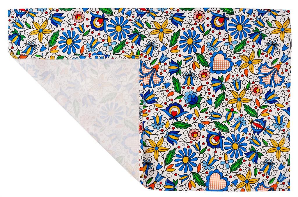 Ścierka kuchenna w kaszubskie motywy ludowe: wykonana ze 100 % bawełny,biała z nadrukowanymi kolorowymi kwiatami kaszubskimi,
