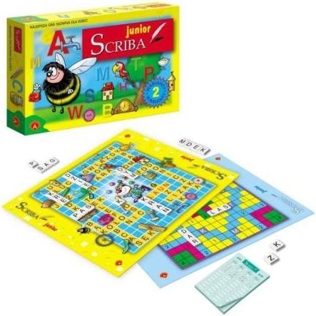 "Scriba Junior" to gra słowna dla dzieci w dwóch wariantach. Pierwszy wariant gry skierowany jest do najmłodszych dzieci (od 5 lat), które z udziałem i pomocą partnerów umiejących czytać poznają w trakcie zabawy alfabet i same stopniowo ćwiczą czytanie. Drugi wariant Scriby Junior adresowany jest do dzieci starszych. Proste zasady, a jednocześnie ogromna różnorodność możliwych sytuacji (wymyślanych i układanych słów) czynią grę bardzo atrakcyjną i emocjonującą. Dzieci rywalizując ze sobą podczas gry uczą się nowych słów, ich poprawnej pisowni, ćwiczą wyobraźnię i koncentrację, poznają zasady krzyżówki słownej. Zawartość pudełka: dwustronna plansza, 106 tabliczek z literami, 2 tabliczki puste, 45 okrągłych żetonów, notes do zapisu punktacji, długopis, worek z tkaniny, instrukcja. 5+ 2-4 graczy