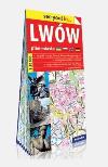 Spacer po pełnym reprezentacyjnych kamienic Rynku Głównym, wizyta w katedrze Łacińskiej, zaduma na cmentarzach Łyczakowskim i Orląt. Zakupy na słynnym bazarze Krakowskim i podziwianie panoramy miasta z kopca Unii Lubelskiej. Plan interesujących dla turysty, centralnych dzielnic w szczegółowej skali 1:10 000 (1 cm – 100 m) pomoże odnaleźć atrakcje Lwowa. • szczegółowy rysunek zabudowy • linie tramwajowe i trolejbusowe wraz z przystankami, trasy marszrutek • bogata treść turystyczna, m.in.: zabytki, muzea, hotele i inne istotne obiekty • parkingi, stacje benzynowe, budynki użyteczności publicznej • opisy w jęz. polskim i ukraińskim (w cyrylicy) • tabela transliteracji alfabetu ukraińskiego • szczegółowy plan centrum • mapa dojazdu do Lwowa w skali 1:220 000 • skorowidz ulic
