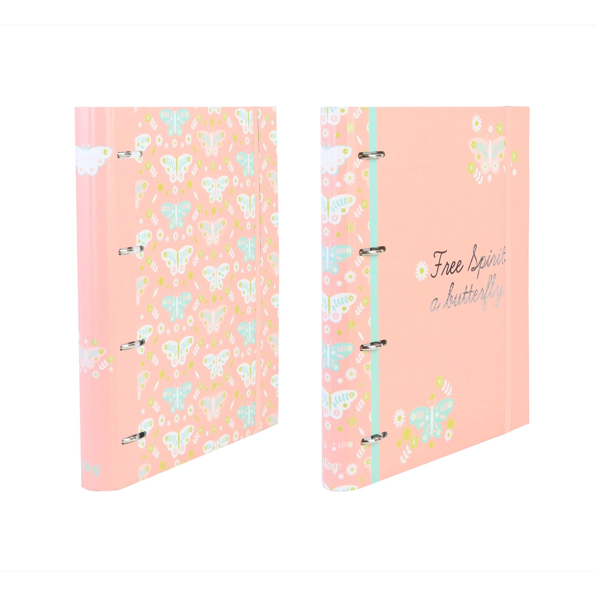 Opakowanie Segregator A4 4-ringowy na gumkę z wkładem w linie i przekładkami Butterflies