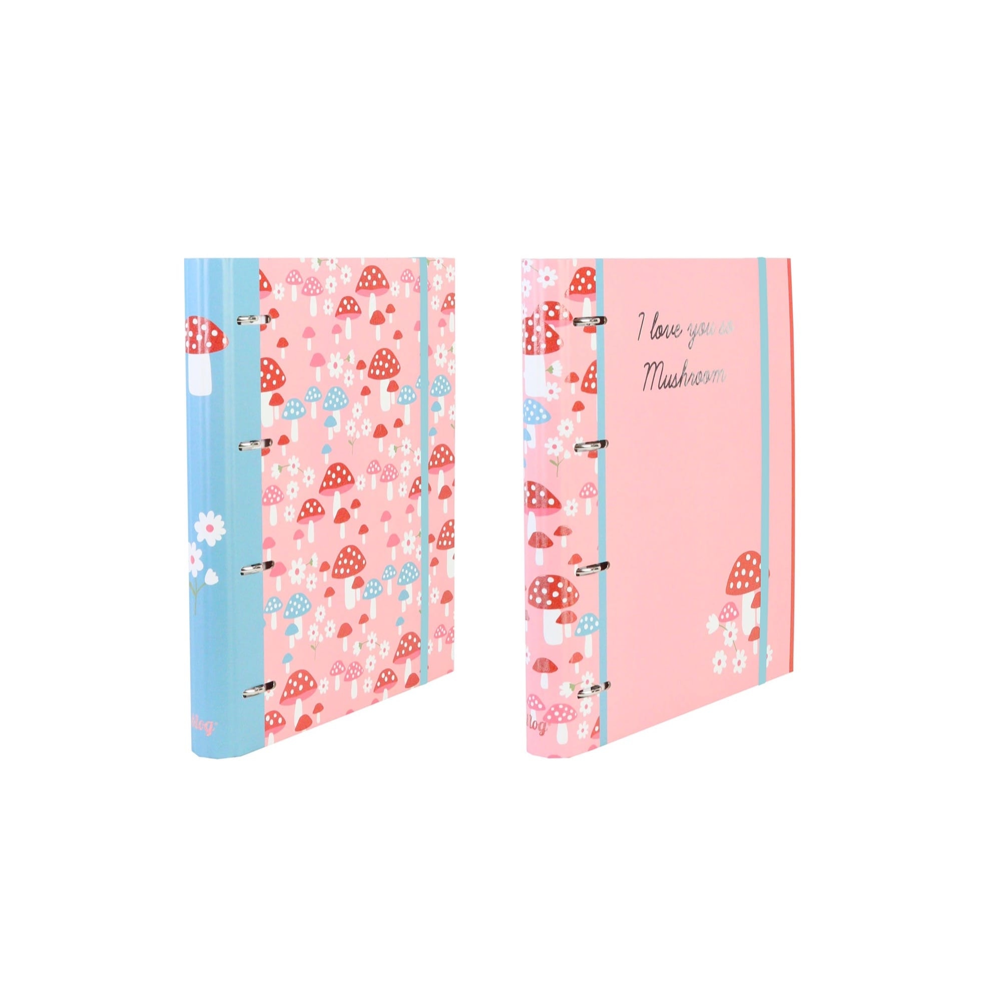 Opakowanie Segregator A4 4-ringowy na gumkę z wkładem w linie i przekładkami Pink Mushrooms