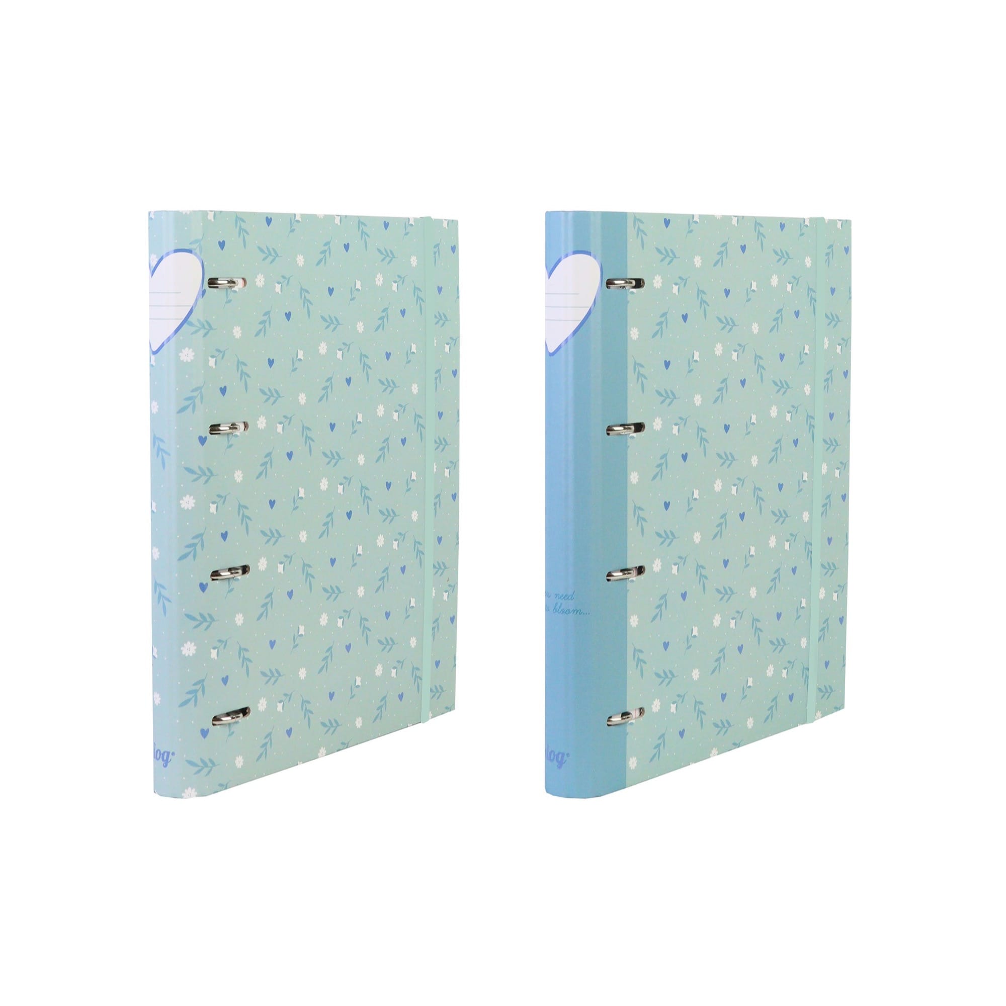 Segregator A4 4-ringowy na gumkę z wkładem w linie i przekładkami sweet blue