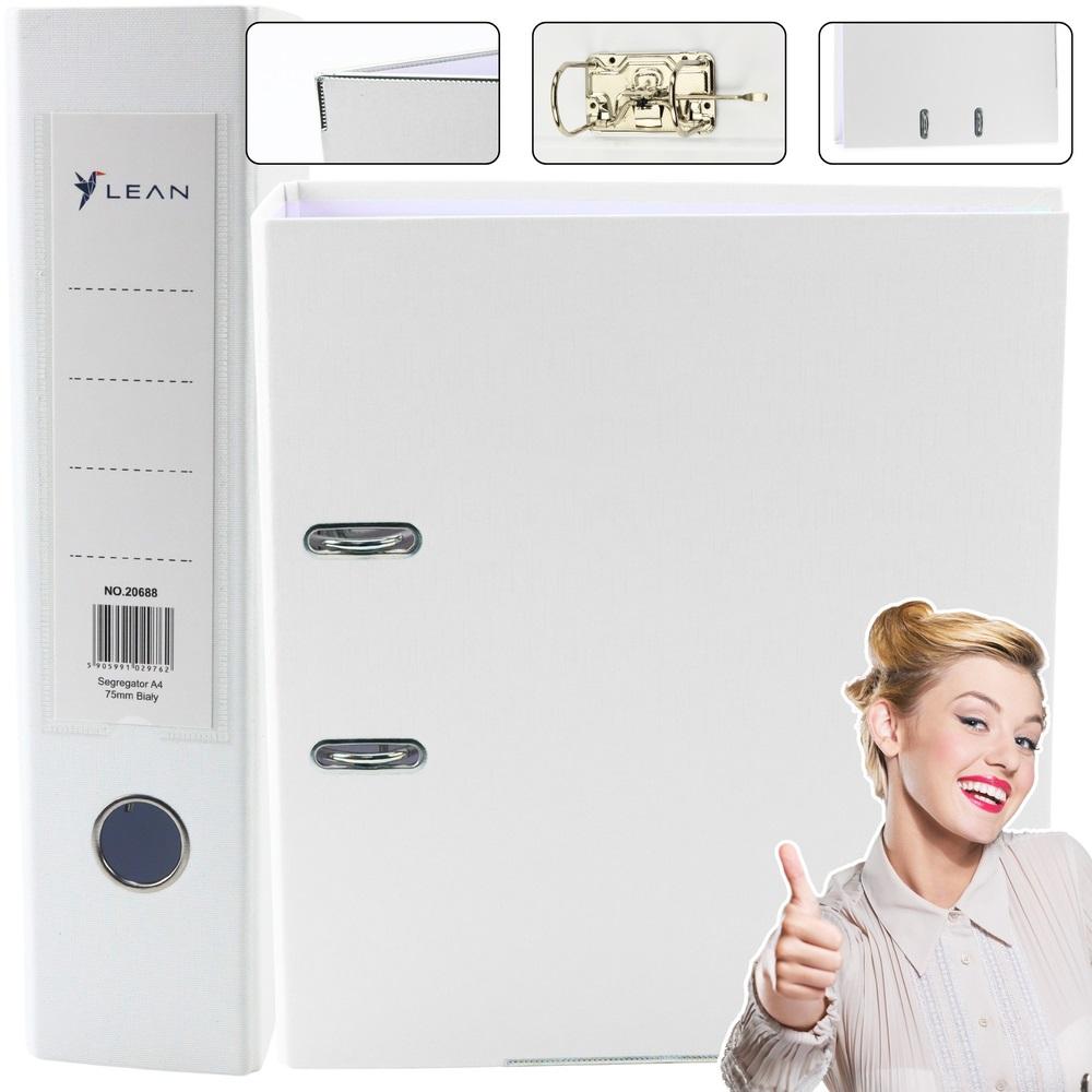 Segregator Na Dokumenty A4/75mm Mechanizm Dźwigniowy Biały Segregator na dokumenty A4 z szerokim grzbietem 75 mm w eleganckim, czystym białym kolorze. Idealny do przechowywania dokumentów w biurze, domu oraz do organizacji materiałów szkolnych. Ten pojemny segregator mieści do 500 kartek (o gramaturze 80g/m), co czyni go świetnym rozwiązaniem do archiwizacji faktur, umów, raportów i innych istotnych dokumentów. Wysoka jakość wykonania sprawia, że segregator jest niezawodny i trwały. Zalety Produktu Wytrzymały materiał: Segregator wykonany jest z trwałego kartonu o grubości 2 mm i gramaturze 1200 gsm, co zapewnia wysoką odporność na codzienne użytkowanie. Solidna konstrukcja: Wzmacniająca dolna listwa dodatkowo zwiększa trwałość segregatora, dzięki czemu służy przez długi czas bez widocznych śladów użytkowania. Niklowany mechanizm dźwigniowy: Wysokiej jakości mechanizm dźwigniowy pozwala na bezawaryjne wkładanie i wyjmowanie kartek, a metalowe okucia są odporne na korozję. Praktyczne wymiary: Segregator o wymiarach 75x320x285 mm doskonale mieści się w standardowych półkach, regałach i szafach biurowych, co pozwala na wygodne organizowanie dokumentów w dowolnej przestrzeni. Bezpieczeństwo i ekologia: Certyfikat CE potwierdza zgodność z europejskimi normami jakości i bezpieczeństwa, a segregator jest także wykonany z materiałów ekologicznych nadających się do recyklingu. Specyfikacja Format: A4 Szerokość grzbietu: 75 mm Kolor: Biały Materiał: Karton o grubości 2 mm i gramaturze 1200 gsm Pojemność: Do 500 kartek (80g/m) Mechanizm: Niklowany mechanizm dźwigniowy Wymiary: 75x320x285 mm Certyfikat: CE Idealny Wybór do Archiwizacji dokumentów biurowych Przechowywania dokumentów w domu Organizacji materiałów szkolnych i biurowych Intensywnego użytkowania w przestrzeni biurowej Segregator A4 jest niezastąpionym akcesorium, które pomoże Ci łatwo i szybko zorganizować oraz uporządkować wszystkie ważne dokumenty i papiery. Dzięki solidnemu mechanizmowi i nowoczesnemu designowi w białym kolorze, ten segregator doda elegancji każdej przestrzeni biurowej i domowej.