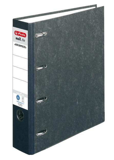 Segregator Max.file Podwójny to praktyczne rozwiązanie, które pozwala na tworzenie dwóch osobnych archiwów w jednym miejscu. Dzięki dwóm oddzielnym mechanizmom dźwigniowym z listwami zaciskowymi, można przechowywać dokumenty w formacie 1 A4 pionowo lub 2 A5 poziomo wszystko w jednym, solidnym segregatorze. Wytrzymała, wzmocniona kartonowa okładka z marmurkowym wykończeniem i ekologiczną białą wyklejką gwarantuje trwałość i estetykę użytkowania. Standardowe rozmieszczenie mechanizmów pasuje do typowego dziurkowania euro, a wzmocniony otwór na palec, miękkie uchwyty oraz metalowe okucia dolne zwiększają komfort codziennego użytkowania. Segregator wyposażony jest w wymienną, dwustronną etykietę grzbietową, co ułatwia organizację i szybkie odnalezienie potrzebnych dokumentów. Posiada certyfikaty FSC, potwierdza jego ekologiczne wykonanie. Szerokość grzbietu: 8 cm. Format: A4.