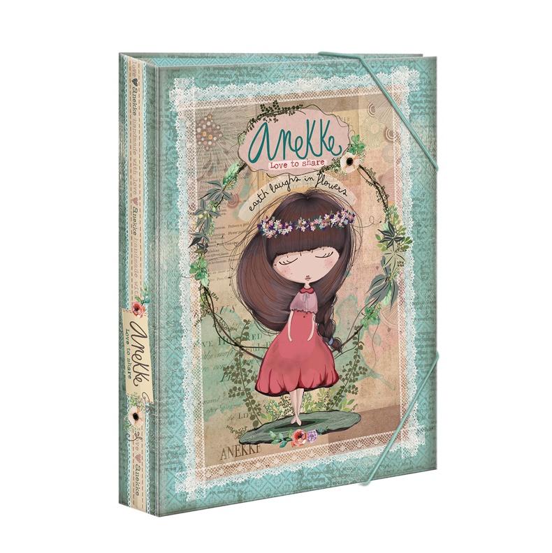 Szkolna teczka w twardej oprawie, zamykana na gumki. Piękne wzornictwo Anekke. Rozmiar A4.
