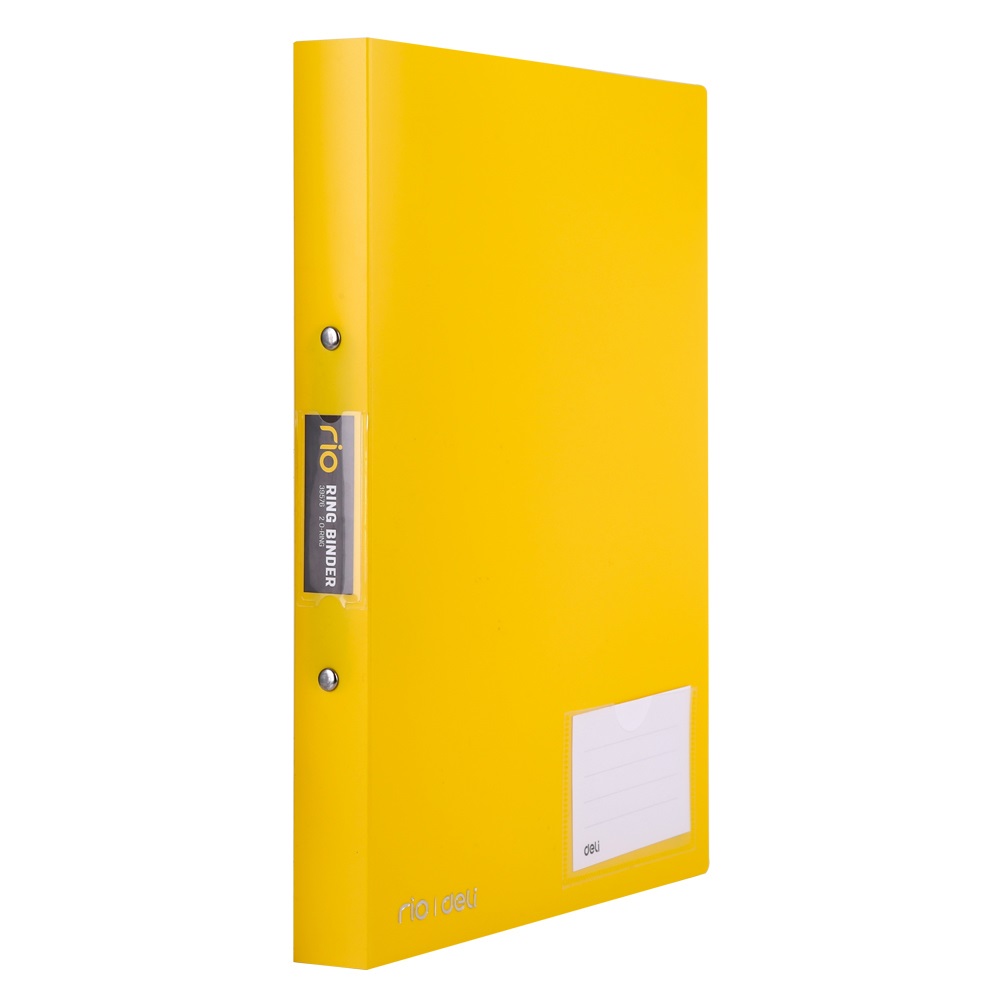 Segregator ringowy Deli 39576_YELLOW seria RIO z kieszenią i miejscem do opisu to idealne rozwiązanie do organizacji dokumentów. Wykonany z mocnego materiału PP, zapewnia długotrwałe użytkowanie.