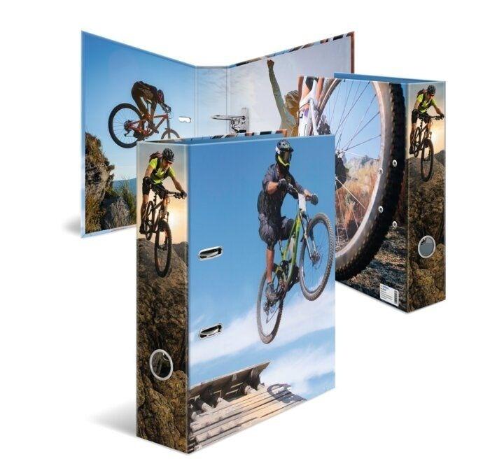 Segregator A4 , szerokość grzbietu 7 cm. Wykonany ze sztywnego, wytrzymałego kartonu. Zadrukowany środek, otwór na kciuk oraz mechanizm dźwigniowy z dociskiem. Dynamiczne zdjęcia. Zafoliowana część powierzchni "ożywia" grafikę.