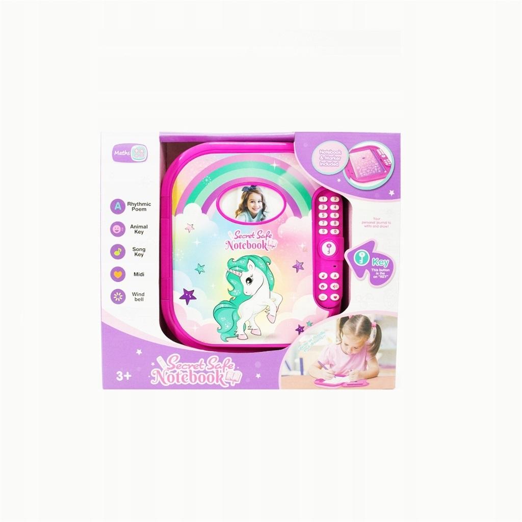 W zestawie znajduje się pamiętnik z jednorożcem. Zeszycik z pisakiem do zapisywania swoich sekretów. Pamiętnik posiada funkcję dźwięku oraz światła, blokadę na kod, 6 różnych trybów dźwięku.