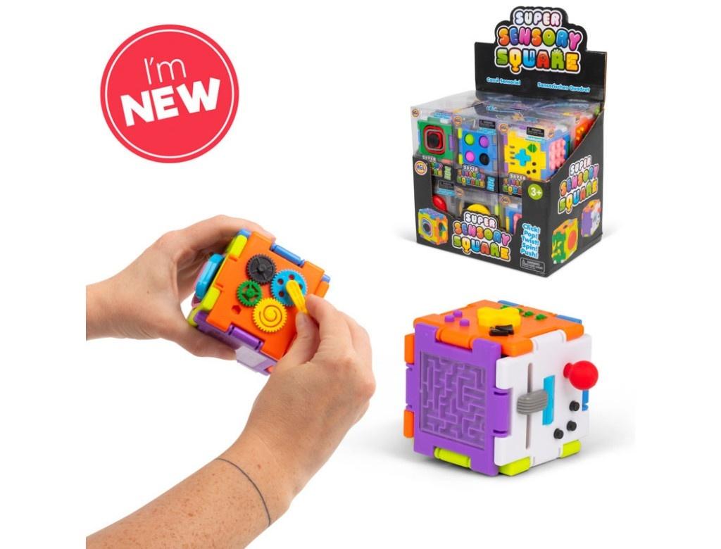 Przedstawiamy Super Sensory Square - Twoje ultimate doświadczenie fidgetowe! Każda strona tej kostki kryje unikalną funkcję sensoryczną do kręcenia, naciskania, wybuchania, skręcania, klikania i wielu innych zabawnych aktywności. Ta kostka z pewnością stanie się ulubionym towarzyszem fidgetowym każdego. Dostępna wyłącznie na rynku brytyjskim, obiecuje nieskończoną eksplorację dotykową i satysfakcjonującą zabawę. Przygotuj się na odkrywanie radości z fidgetowania z Super Sensory Square!