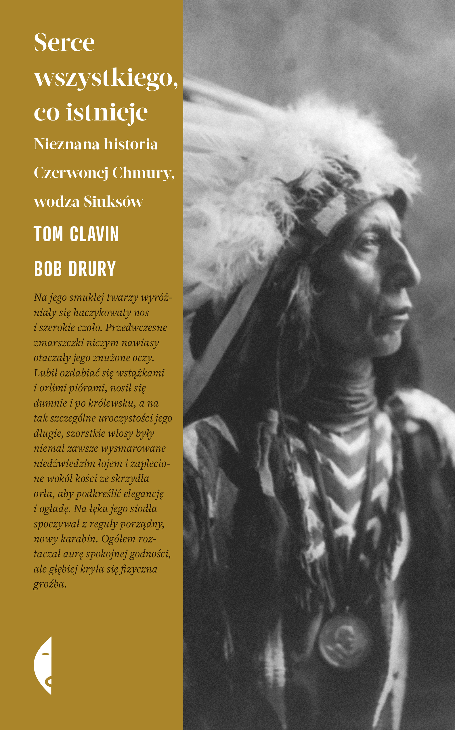 Czerwona Chmura to jedyny Indianin, który zdołał pokonać armię Stanów Zjednoczonych i narzucić jej pokój na własnych warunkach. Aby zyskać szacunek współplemieńców, syn zmarłego w delirium alkoholika musiał być odważniejszy, sprytniejszy i okrutniejszy od innych. Od najmłodszych lat wykazywał się wyjątkową rozwagą i zmysłem strategicznym. Był śmiały, bezwzględny i niezwykle brutalny. Jednak ten być może najpotężniejszy indiański wojownik na wiele lat popadł w zapomnienie. Bob Drury i Tom Clavin malują biografię wodza w żywych barwach, a w tle kreślą sylwetki jego towarzyszy, rywali i nieprzyjaciół: wodzów Siedzącego Byka i Szalonego Konia, człowieka gór Jima Bridgera, genarała Williama Shermana, odkrywcy Johna Bozemana i wielu innych. Ta książka to również dramatyczna kronika ostatecznego starcia amerykańskich cywilizacji i hołd oddany rdzennym mieszkańcom Wielkich Równin. „W niezwykłej opowieści o Czerwonej Chmurze, jedynym indiańskim wodzu, który wygrał nie tylko potyczkę czy bitwę, ale całą wojnę ze Stanami Zjednoczonymi, autorzy rozprawiają się z dwoma mitami o Dzikim Zachodzie: o czerwonoskórych dzikusach, przed którymi musieli bronić się dzielni pionierzy, i o bezbronnych, kochających naturę i swoje święte góry tubylcach, którzy padli ofiarą chciwych, podstępnych i bezwzględnych białych najeźdźców. Obie strony były niesłychanie okrutne, co Drury i Clavin opisują rzetelnie i bezstronnie, nie przemilczając wyłupywanych oczu, odcinanych skalpów i penisów, gwałconych kobiet i główek ich dzieci roztrzaskiwanych o skały. Dla ludzi o słabszych nerwach to może być niełatwa lektura, ale obowiązkowa dla wszystkich, którzy chcą poznać wstydliwą (dla obu stron) prawdę historyczną.” Mariusz Zawadzki „Książek bezpodstawnie określanych jako „monumentalne dzieła” jest mnóstwo. Jednak reportaż Drury’ego i Clavina absolutnie zasługuje na ten tytuł. Fantastyczna, nasycona faktami i doskonale opracowana opowieść. Przez pryzmat historii niezwykłego wodza Czerwonej Chmury autorzy w przepiękny sposób ukazują dzieje szczepu Siuksów oraz walkę o dominację na amerykańskim Zachodzie.” S. C. Gwynne, autor książki „Imperium księżyca w pełni. Wzlot i upadek Komanczów” „Niezwykła, pełna fascynujących szczegółów historia Czerwonej Chmury – przebiegłego wodza i genialnego stratega, przy którym lepiej znani Siedzący Byk i Szalony Koń wypadają blado. To nie jest kolejna opowieść o przegranych i wygranych na Dzikim Zachodzie – to przejmująca i zaskakująca historia tego czasu oraz pomnik dla rdzennych mieszkańców Ameryki.” „USA Today” „Rzetelna, żywa i porywająca opowieść o kłamstwach, podstępie i brutalnej rzezi Indian. Drury i Clavin kreślą sylwetki największych indiańskich wodzów, a w roli głównego bohatera obsadzają Czerwoną Chmurę. To również szczegółowa kronika losu Indian, brutalnie potraktowanych przez najeźdźcę niszczącego wielopokoleniową tradycję rdzennych Amerykanów.” Christopher Corbett, „The Wall Street Journal” „Książka, od której nie można się oderwać. Sięgając do wielu źródeł – archiwów, listów i nieznanych wspomnień – autorzy stworzyli niezwykłą opowieść o kresie istnienia szczepu Indian, któremu przewodził Czerwona Chmura. Choć to rzetelny reportaż, czyta się jak najlepszy western.” Kate Tuttle, „The Boston Globe” „Historia Czerwonej Chmury trzyma w napięciu jak najlepsza powieść o Dzikim Zachodzie. Wciągająca, pozbawiona sentymentalnych obrazów opowieść oraz nadzwyczajna rzetelność w poszukiwaniu dokumentów źródłowych pomagają odtworzyć ten niezwykły okres w historii podboju Dzikiego Zachodu.” „Minneapolis Star Tribune” „Idealna książka dla wszystkich zainteresowanych historią rdzennych Amerykanów. Aż trudno uwierzyć, że Czerwona Chmura, jeden z najważniejszych z wodzów indiańskich, niemal popadł w zapomnienie. Na szczęście książka Drury’ego i Clavina pozwala nam odkryć tę historię na nowo.” „Publishers Weekly”