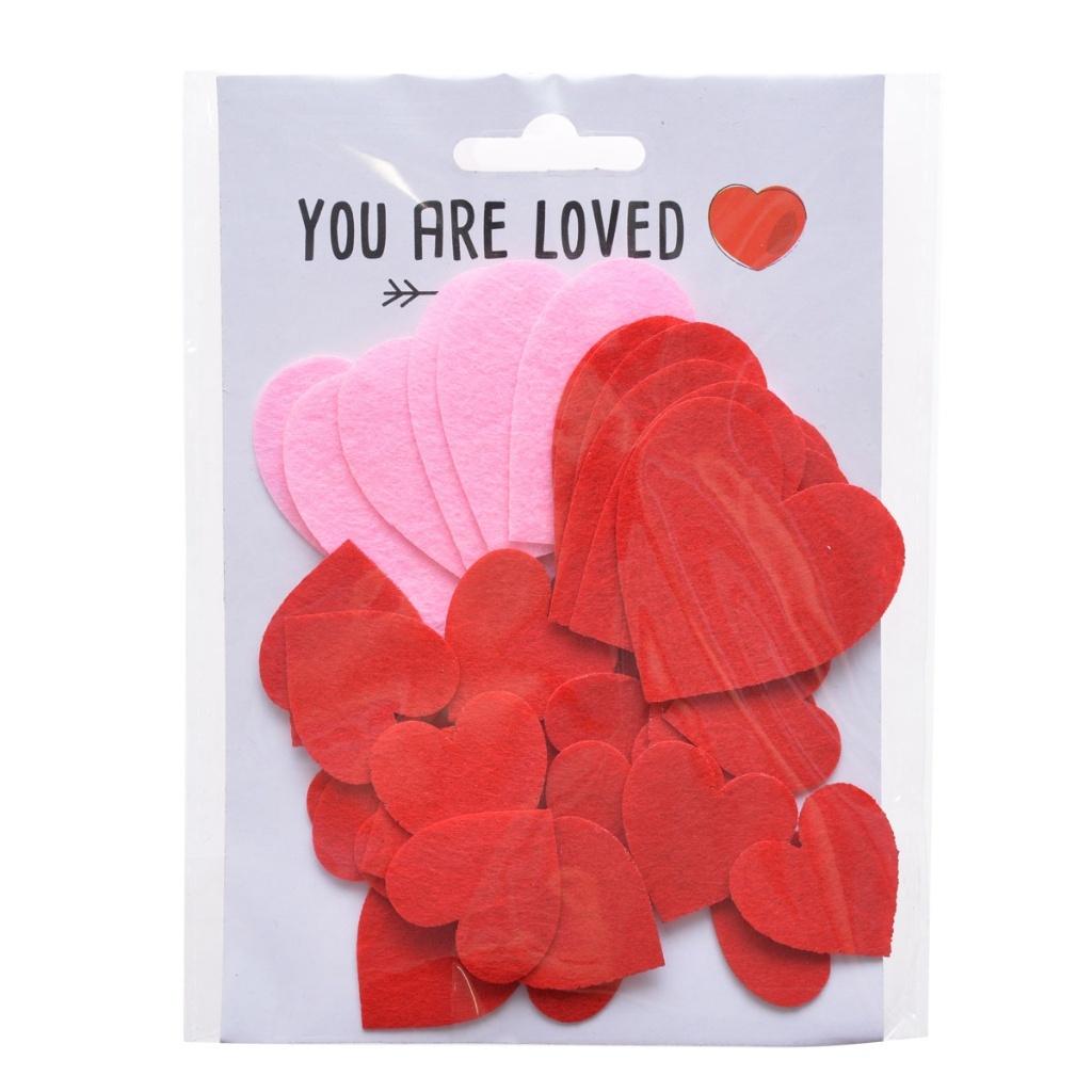 Serduszka dekoracyjne czerwone i różowe w dwóch rozmiarach: 5x4,5cm i 3x3cm. 38 szt. w opakowaniu.