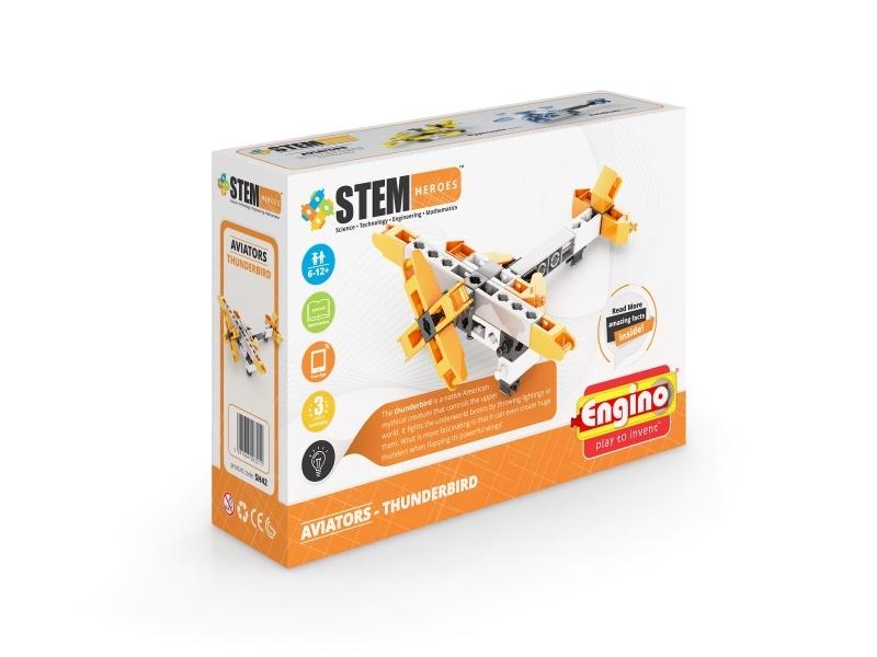 Zestawy klocków STEM Heroes, seria Awiacja, umożliwiające zbudowanie 1 modelu z każdego zestawu, ulotka informacyjna dotycząca tematyki danego zestawu, bezpłatna aplikacja do ściągnięcia z Internetu. Zestawy łączą się, po zebraniu trzech zestawów można zbudować model combo'.