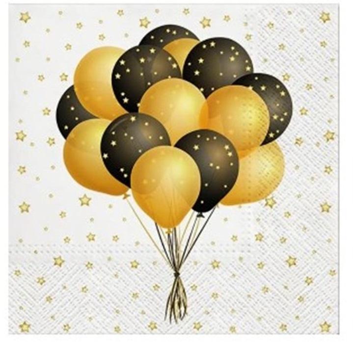 Serwertki Balony czarno-złote 33x33cm 20szt