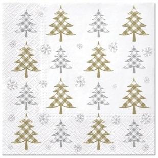 Serwetki Choinki srebrno-złote 33x33cm 20szt