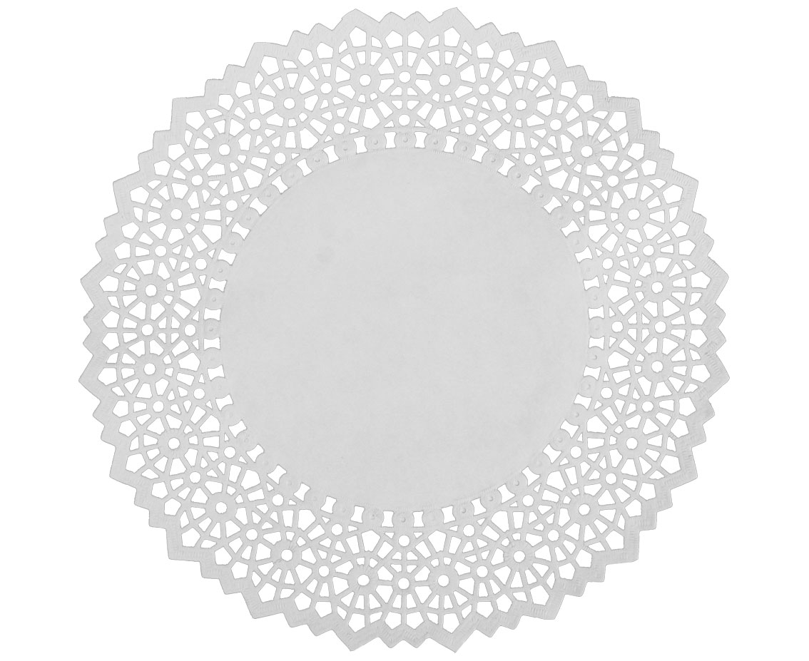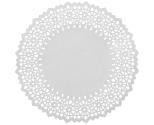 Serwetka papierowa z ażurowym brzegiem pod ciasto pakowana po 100 sztuk.