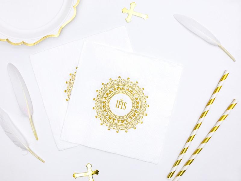 Opakowanie Serwetki Komunijne IHS 33x33cm złoty 20szt