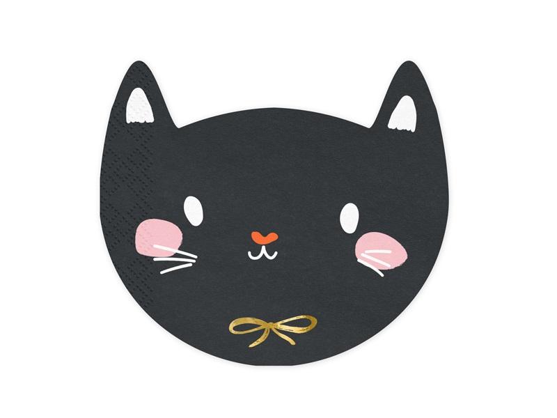 Serwetki papierowe Kotek w kolorze czarnym z kolorowym nadrukiem, wymiary po rozłożeniu ok. 30 x 26 cm, wymiary po złożeniu ok. 15 x 13 cm.(1 op. / 20 szt.)