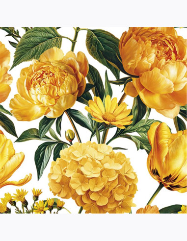 Delikatne serwetki papierowe Daisy z żółtymi kwiatami na jasnym tle. Serwetki dekoracyjne eleganckie o stonowanej kolorystyce. Kwiatowe serwetki ozdobne, które wprowadzą spokój i harmonię do aranżacji stołu. To miękkie serwetki z bibuły tissue od polskiego producenta serwetek dekoracyjnych Pol-Mak. W tej odsłonie sprawdzą się jako serwetki na stół w restauracji oraz domu. Serwetki lunch pakowanie: 20 szt.