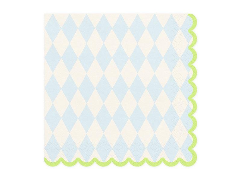 Serwetki papierowe w romby, mix kolorów, wymiary po rozłożeniu ok. 33 x 33 cm, wymiary po złożeniu ok. 16.5 x 16.5 cm.(1 op. / 20 szt.)