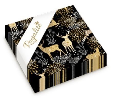 Serwetki Royalite to: najnowsze wzornictwo wyznaczające trendy rynkowe rozmiar 33 cm x 33 cm, 20 sztuk wysoka jakość użytych komponentów wyprodukowane z 3-warstwowej bibuły niebielonej chlorem ulegają biodegradacji z wykorzystaniem ekologicznych farb wodnych przyjazne środowisku.