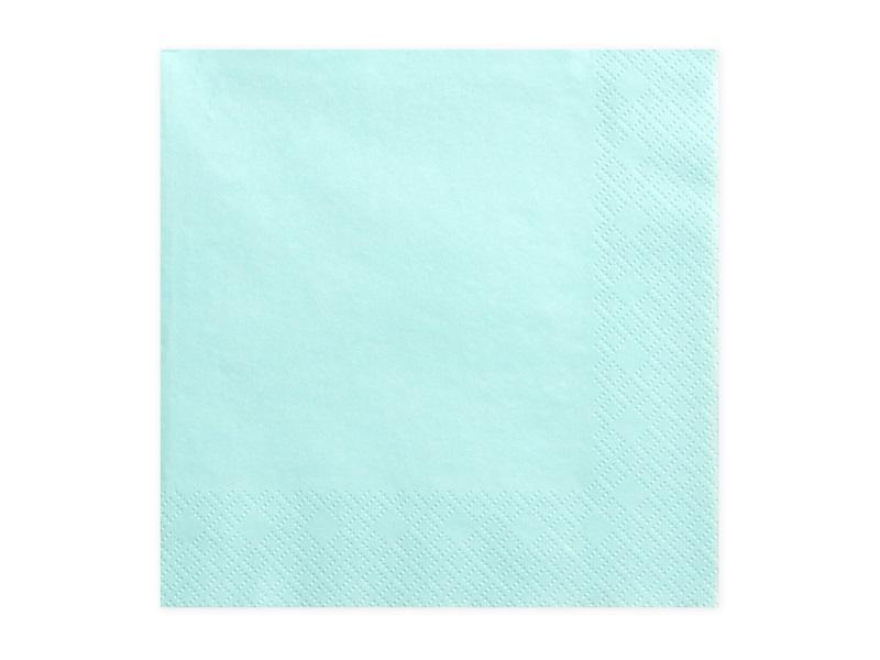 Serwetki trójwarstwowe w kolorze bladoturkusowym, wymiary ok. 33x33 cm.(1 op. / 20 szt.)