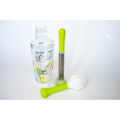Shaker barowy wykonany z wysokiej jakości tworzywa plastykowego. Idealny do przygotowywania drinków i koktajli na imprezach. Zawiera dodatki w postaci: – wyciskacza do cytrusów, – ugniatacza do owoców i lodu, – oraz miarki. SZCZEGÓŁY Na shakerze znajdują się przykładowe przepisy na drinki. Pojemność shakera: 550 ml Wysokość całkowita: 22 cm