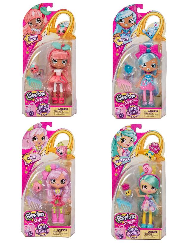 Odkryj nowe laleczki Shoppies Shop Style! Laleczka Shoppies ma długie i kolorowe włosy z oryginalną opaską. Ubrana jest w najmodniejsze kreacje i modne buty. W zestawie znajdziesz figurkę Shopkins i grzebień do stylizacji włosów. Zbierz całą kolekcję lalek Shoppies z kolekcji Shop Style! (mix 4 wzorów)